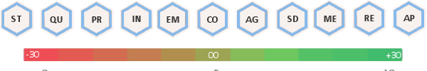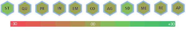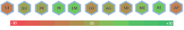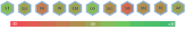 St -5, Qu -5, Pr +5, In +5, Em +5, Co -5, Ag +0, Sd +30, Me +5, Re -10, Ap +10,Resistance Bonuses