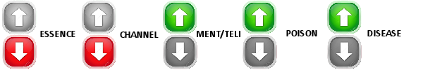 St -5, Qu +0, Pr +0, In +5, Em +0, Co -5, Ag +0, Sd -5, Me +15, Re +15, Ap -5,Resistance Bonuses