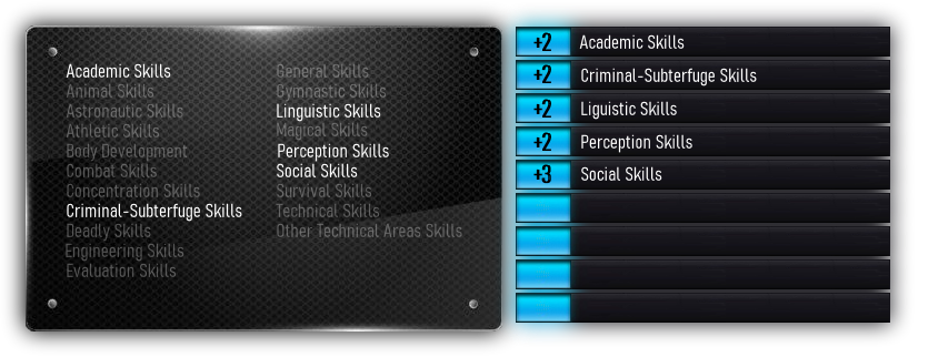 | Lvl Bonus | +3 | +3 | +3 | +3 | +3 | +3 | +3 | - | - | - | - | - | - | - | - | - | - | - | - | - | - |