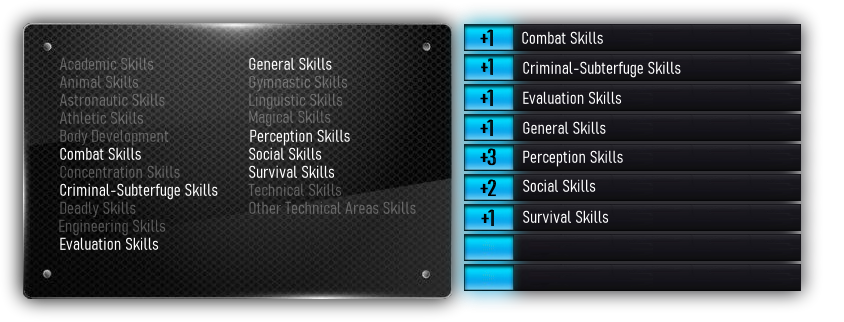 | Lvl Bonus | +2 | +2 | +2 | +2 | +2 | +2 | +2 | - | - | - | - | - | - | - | - | - | - | - | - | - | - |